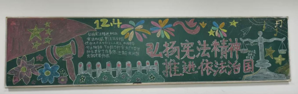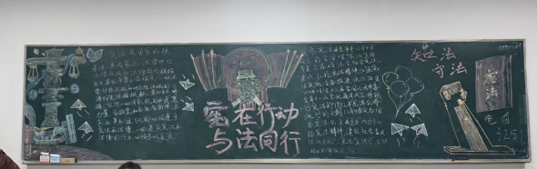 各班学生充分发挥想象力,将宪法条文、法治故事、典型案例等元素融入黑板报设计,通过图文并茂的形式展现宪法的权威与温度。各班级的黑板报版面图文并茂,字迹工整,勾勒出浓浓的普法精神,营造良好的学习宪法氛围,达到宣传、教育的目的。